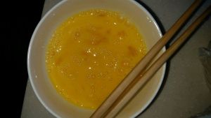 第一步:将细砂糖全部加入蛋液打匀,2分钟时间,不要打发。