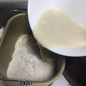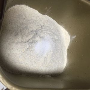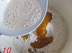 加面粉,白糖,发酵粉,加以充分搅拌。