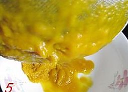 为了做出的馒头更细腻,把南瓜过筛;过筛过程有点慢,要有耐心不断压南瓜泥;过筛后把南瓜泥放凉备用;