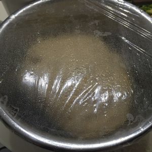 和面:将面粉放入盆中,加入3克发酵粉。另取一小碗放入5克酵母,30克白糖适量水搅匀,然后倒入面粉盆中,加适量水把面打成大穗子,揉光面团,盖上湿布放置一旁醒发。