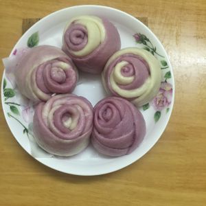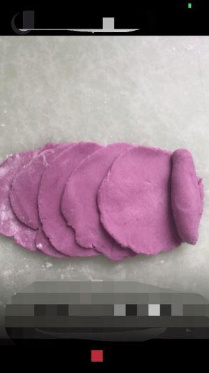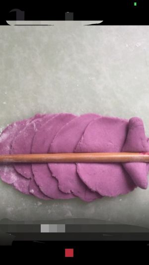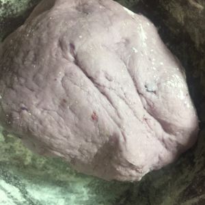 紫薯蒸熟,剁成泥,和面粉,糖混合,加入适量牛奶,揉成团,发酵40—60分钟