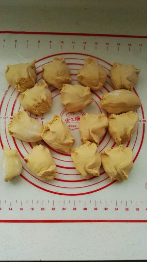 南瓜切小块加水入奶锅煮熟,冷凉后倒盆中、用手抓碎放入酵母搅匀。(不一定凉透,用手摸下和手温度差不多,不烫手就可,如果太热会把酵母烫死的。)
