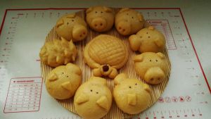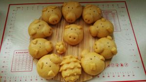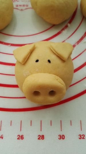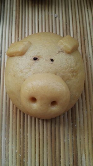 用湿筷子沾黑芝麻粘头上做眼睛。萌萌的小猪做好了,可爱吧!