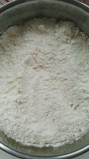 用掌跟揉、折叠。接着再拳头捣、揉、折叠等排气方式排气。(分次撒少量干粉防粘)。