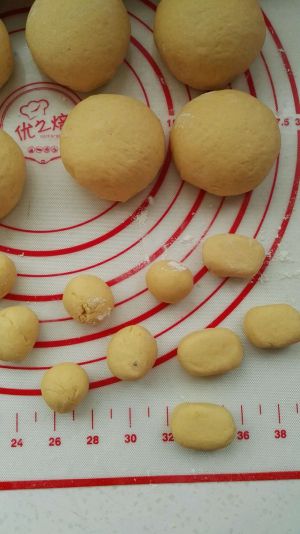 逐个揉圆揉光滑,取两个剂孑搓细长,揪成小剂做鼻子。