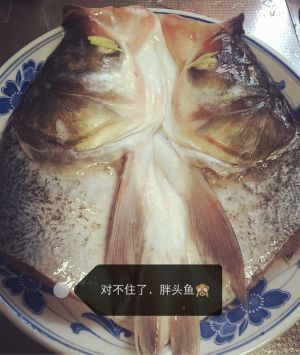鱼头对半切开 洗净处理好 均匀抹上盐 料酒后放于盘内做“SPA”一刻钟