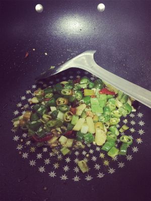 热锅冷油 将葱姜蒜爆香后 再加天椒 干辣椒提辣味