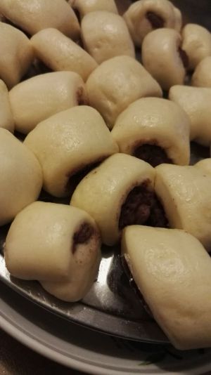 1.把面粉称好 2.加入鸡蛋 3.加入糖 4.酵母粉 5.加入奶粉或者炼乳 6.边加水(或者牛奶),边和面,把面和得不粘手就差不多了 7.放进烤箱发酵30分钟,差不多2-3倍大~拉开絮状 8.继续放进和面机和面~带用刀割来没有蜂窝状,就说明和好了 9.把面团分成几分,弄成长长的,压憋,然后把豆沙放进去,然后捏好~然后把封口放下~用刀切的一小个小个的 10.放蒸隔里面然后又放进烤箱发酵30-40分钟~ 11.直接用冷水垫底,蒸25-30分钟,待时间差不多了~关掉火然后闷3-5分钟(一定要闷,不然会塌!!!!)