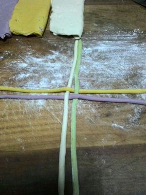各种分类搅拌,过筛加入鸡蛋液里面,将面团揉好