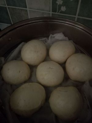 锅内水烧开,放入垫上蜡纸的馒头,大火蒸15分钟即可