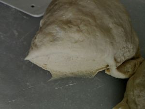取出压扁,40克面粉分两次加入揉均,表面柔和。