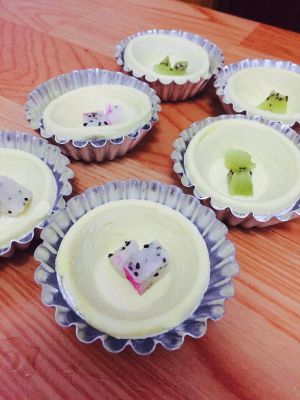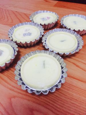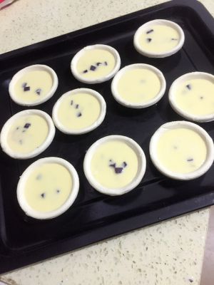 将蛋挞水倒入买好的蛋挞皮中,七分满即可。