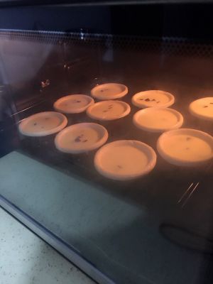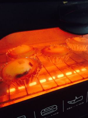 将蛋挞水倒入蛋挞皮,我的烤箱是180度,先烤十五分钟,然后转一边再烤十分钟,以防会糊