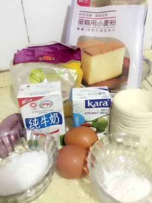 准备好食材,糖粉可以用白绵糖代替,做蛋挞的糖尽量要细,糖粉是最好的选择