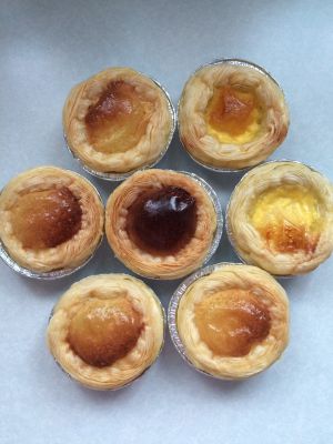 烤箱预热,将蛋挞放入烤箱中层,200度烤20分钟……
