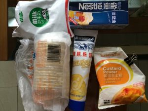准备好所需的各种食材,不过图中没有白砂糖和蛋黄