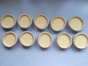 将做好的蛋挞水倒入蛋挞皮中,七八分满即可