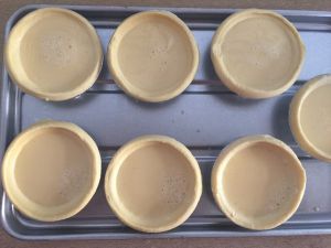 把蛋挞液倒进蛋挞皮里,大约8,9分满