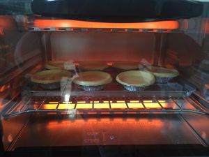 将蛋挞液倒入挞皮中,七分满,上烤箱烤制即可。