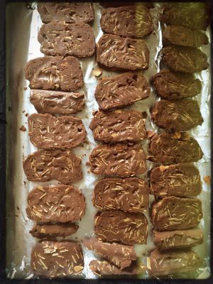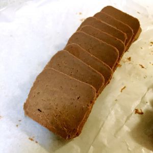 冻好后,切成厚薄均匀的饼干片待用