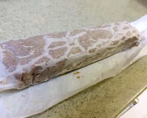 把拌好的面糊用隔油纸包好整形,放入冰箱冷冻1小时
