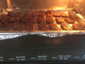 拿出切片,放入烤箱,烤箱底部垫锡纸,预热10分钟150°后放入烤箱,烤箱调整为上下火150°,50分钟后取出。