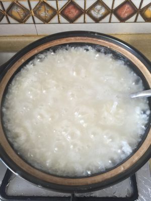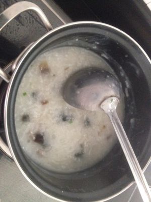 把粥熬到平常我们喝白粥的时候差不多了!