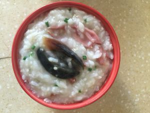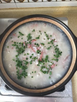 我用的是老昌香肠,这种香肠有种果木的熏香味,做出的粥,有特殊的味道。