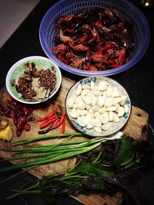再放小龙虾爆香,小龙虾尾巴卷起才放全部材料