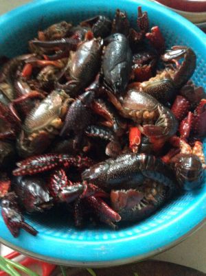 清理小龙虾 1、每一只小龙虾都要拿刷子刷干净,尤其是腹部,不卸脑袋的,头部背部胸部都要刷...洗刷刷喜刷刷.. 2、刷干净后用清水加醋泡1-2小时 3、卸头卸爪,很残忍的说..一定要带橡胶手套啊.. 4、卸虾线,小窍门,小龙虾扇形尾部,把中间的那片揪掉,虾线就可以轻松拽出来了 5、都清理完在拿水洗洗吧,控干