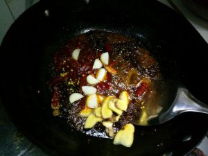 开炒 1、独头蒜不用切、姜切大片、干辣椒洗干净 2、开会,锅里放比炒菜多一点的油,油热放姜、蒜、花椒、干辣椒爆香