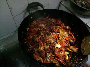 龙虾要提前去掉虾头,和虾线,不会的可以私聊我,最好是要把背上的壳给剪开,这样比较入喂!炒得差不多后加入土豆,土豆熟了后加入黄瓜!最后放入老抽上色,白糖提鲜,还有一点胡椒粉,鸡精。适当的放点盐,然后倒入啤酒,这步很关键哟!出锅前放点芹菜提下香味!这个看个人吧,不喜欢也可以不放!炒均匀就可以出锅了!