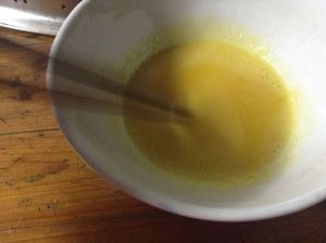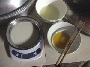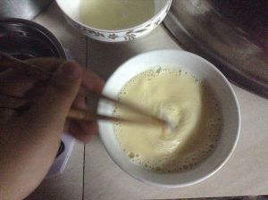 挞水:把所有材料混合,用打蛋器搅拌均匀,如果用的不是糖粉,可以低温度加热至糖化开。边加热边搅拌。