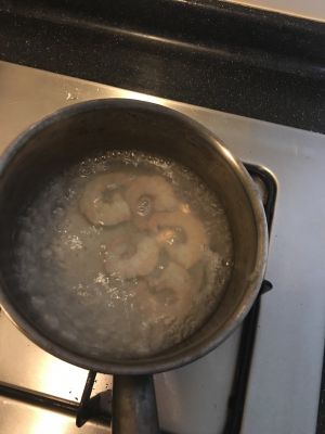虾仁洗干净去泥肠,锅里水烧开,下虾仁煮熟