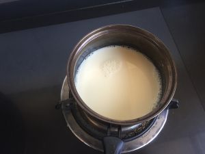 将淡奶油 +牛奶搅拌 再加白砂糖 开小火加热至糖融化