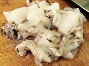 小鱿鱼2个洗干净后横切成圈状,沥干水