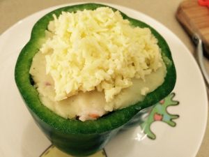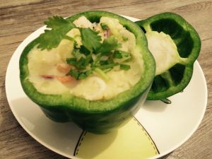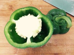 青椒一个,切带蒂的地方作为碗盖,剩下部分为碗(没有青椒可以忽略此步骤,仅为装饰用)