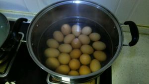 冲洗干净鸡蛋外壳,凉水中火煮熟