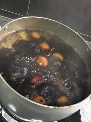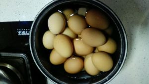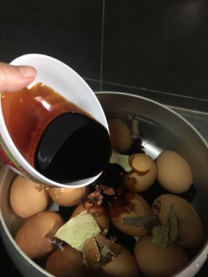 锅中加清水烧开,放入上面备好的调料烧开。放入已敲烂鸡蛋,大火烧开转中火烧30分钟。