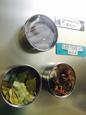 将五花肉焯水。清水锅中放入拍散的姜片、葱结及料酒煮开,将肉块放入淖出血沫后捞出冲干净备用;将香料(八角、桂皮、花椒、草果)及茶叶用温水浸一下去除杂质,放入清水锅中,加入焯水后的五花肉,调入盐、老抽、冰糖,一同煮开,尝一下味道,酌情调整调味料的份量;