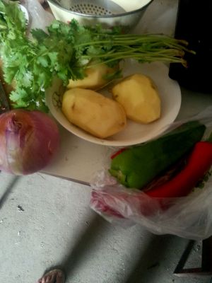 土豆熟后放洋葱 青椒 最后出锅撒上香菜