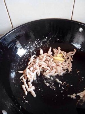 锅里加油加热,瘦肉倒入锅里,煸炒几下。