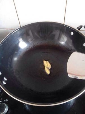 姜片和蒜瓣一起倒入锅里,炒出香味。