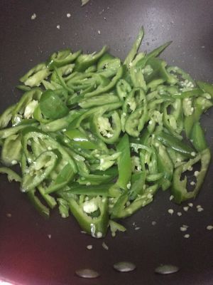 炒到青椒变软,放生抽、盐,大火收汁出锅