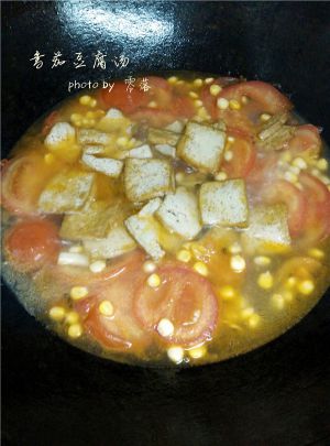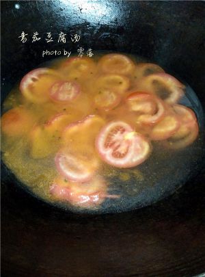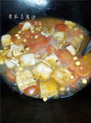 加豆腐和水,放入蘑菇精转中火煮5到7分钟。