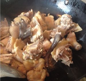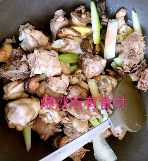 7.上色如果觉得不够好看,可以适当加一点点老抽,翻炒至鸡块颜色均匀