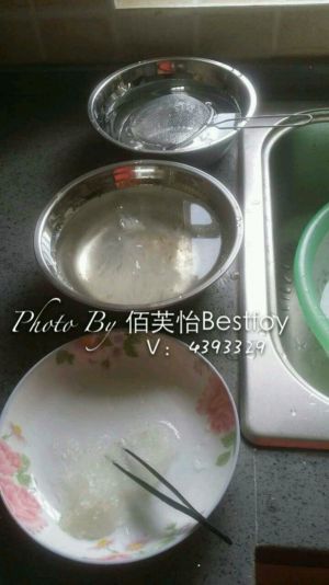 挑完毛的燕窝加入纯净水或者矿泉水,喜欢厚点的口感就少加水。作为汤羹的话水就多加点