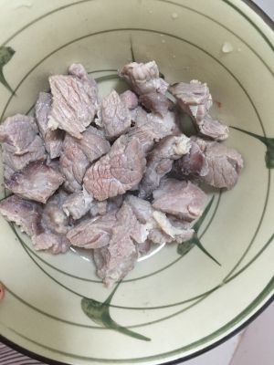 牛肉切均匀小块,放水里焯一下然后把血水倒掉,加水煮半小时左右