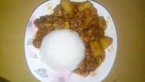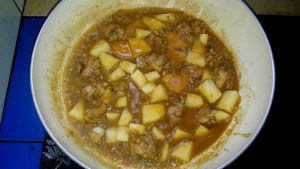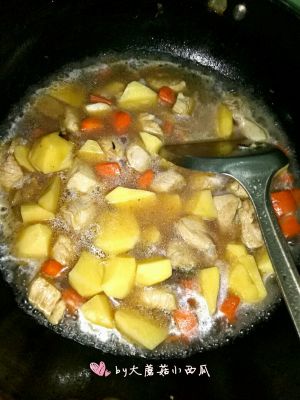 依次在锅里加水、咖喱、土豆块,大火炖二十分钟即可出锅,注意汤汁不要烧得太干