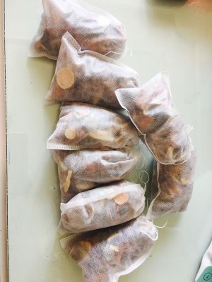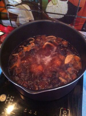 把料包放入锅中,加入三升水。十分钟大火煮沸,三十分钟小火慢慢煮。